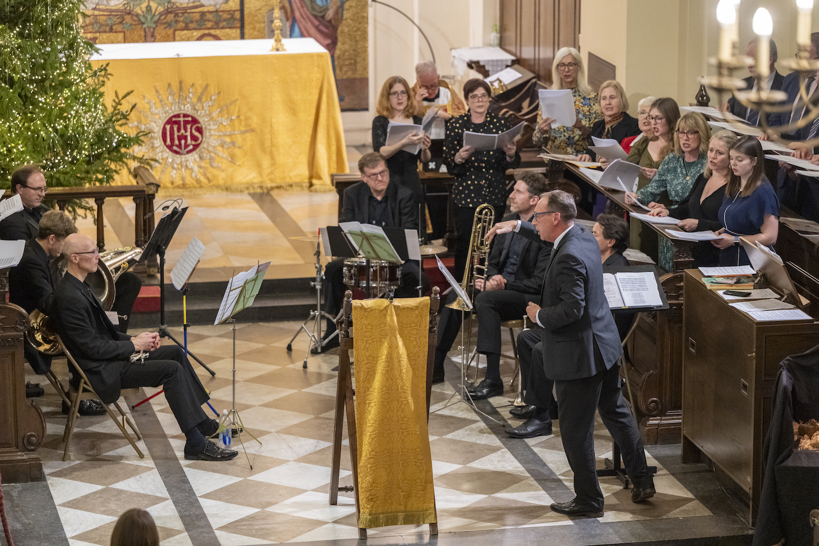 The Reed Smith choir and Polished Brass perform at the Carol Concert