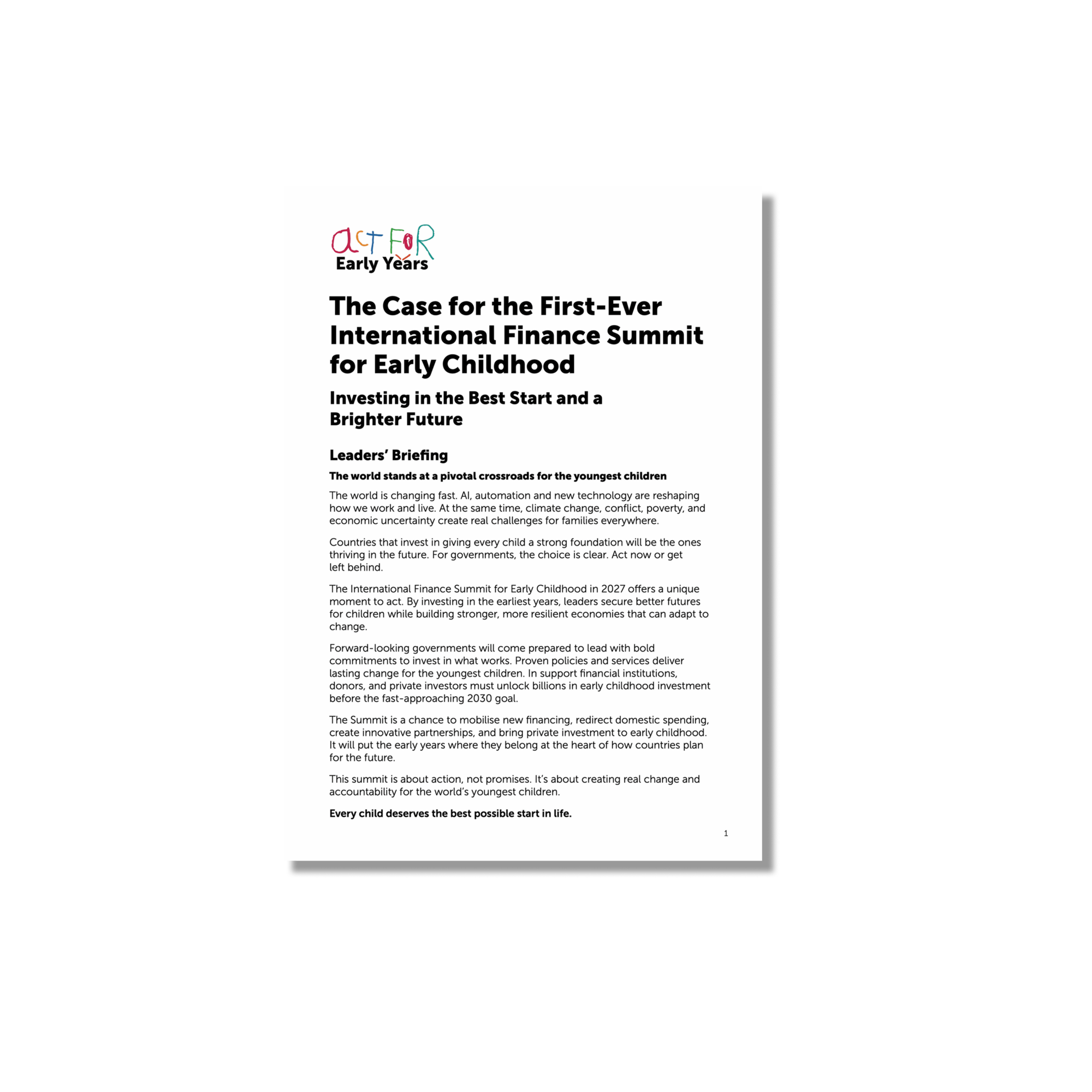 This report looks at why the early years matter and makes the case for investment and calls for a global movement to ensure every child has the best start in life.